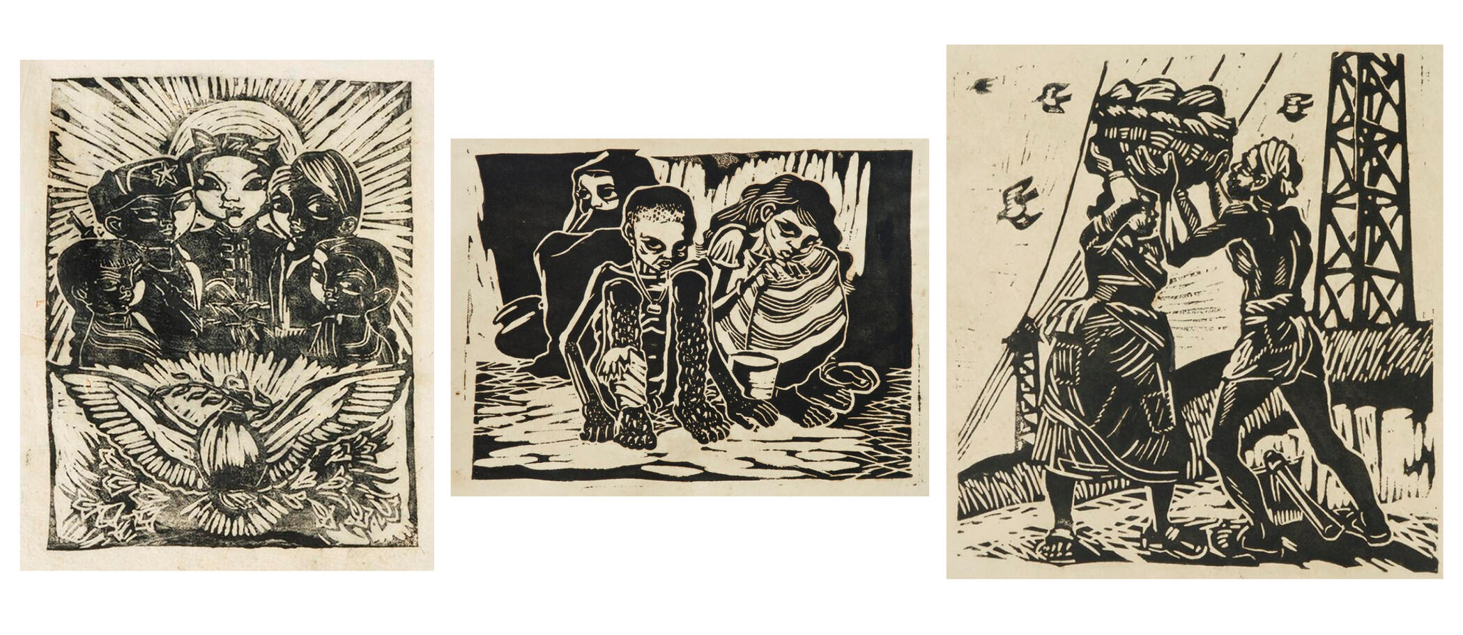 Various linocuts on paper. (Images courtesy of Akar Prakar Gallery.)