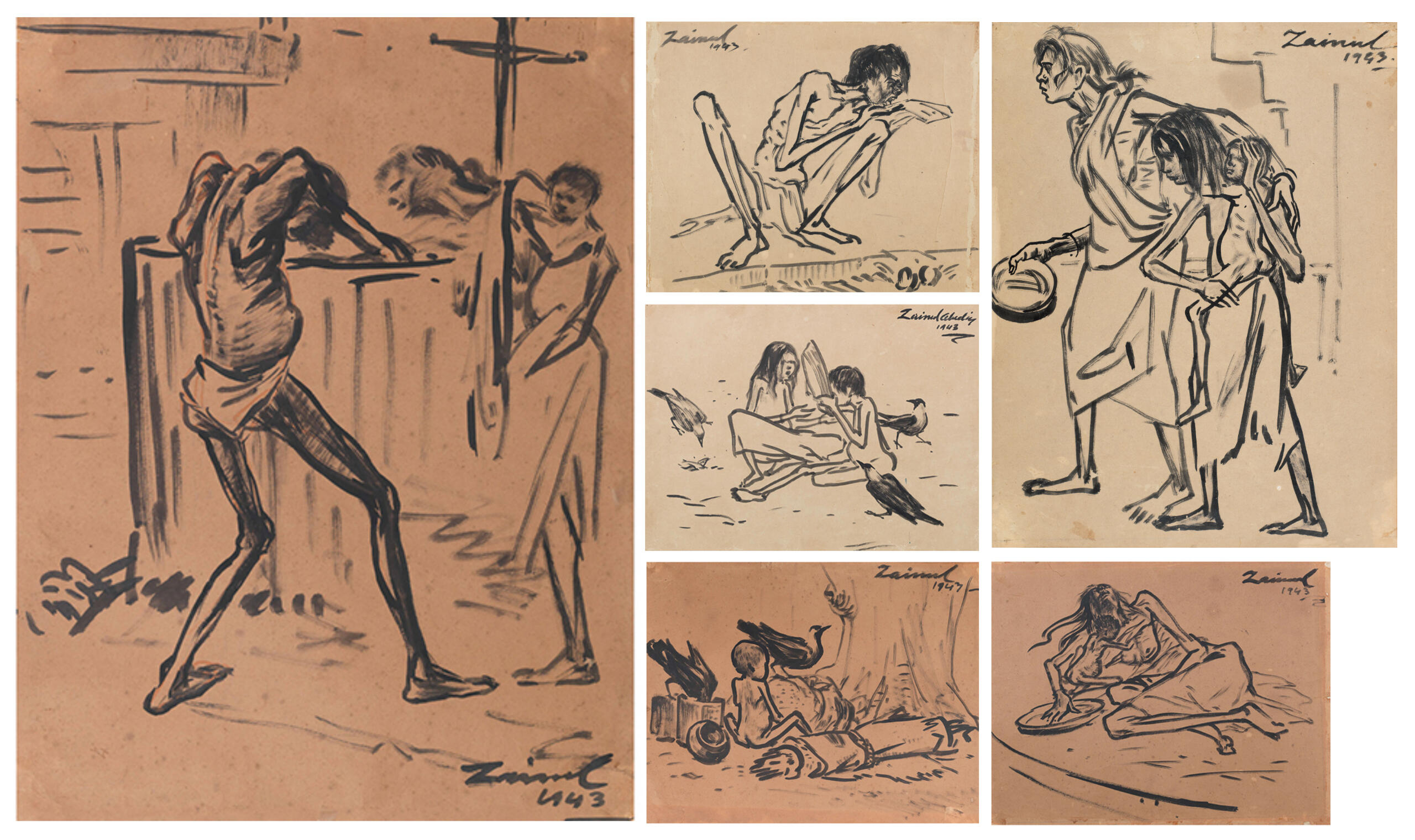 Various famine sketches, ink on paper, ca. 1943. (Courtesy of The Bengal Foundation.)
