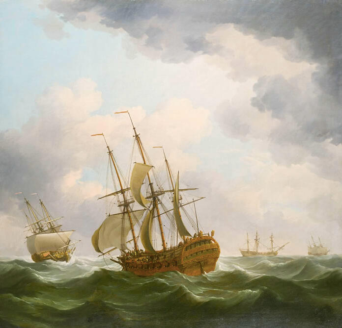 "East Indiamen in a Gale" by Charles Brooking (ca. 1759)