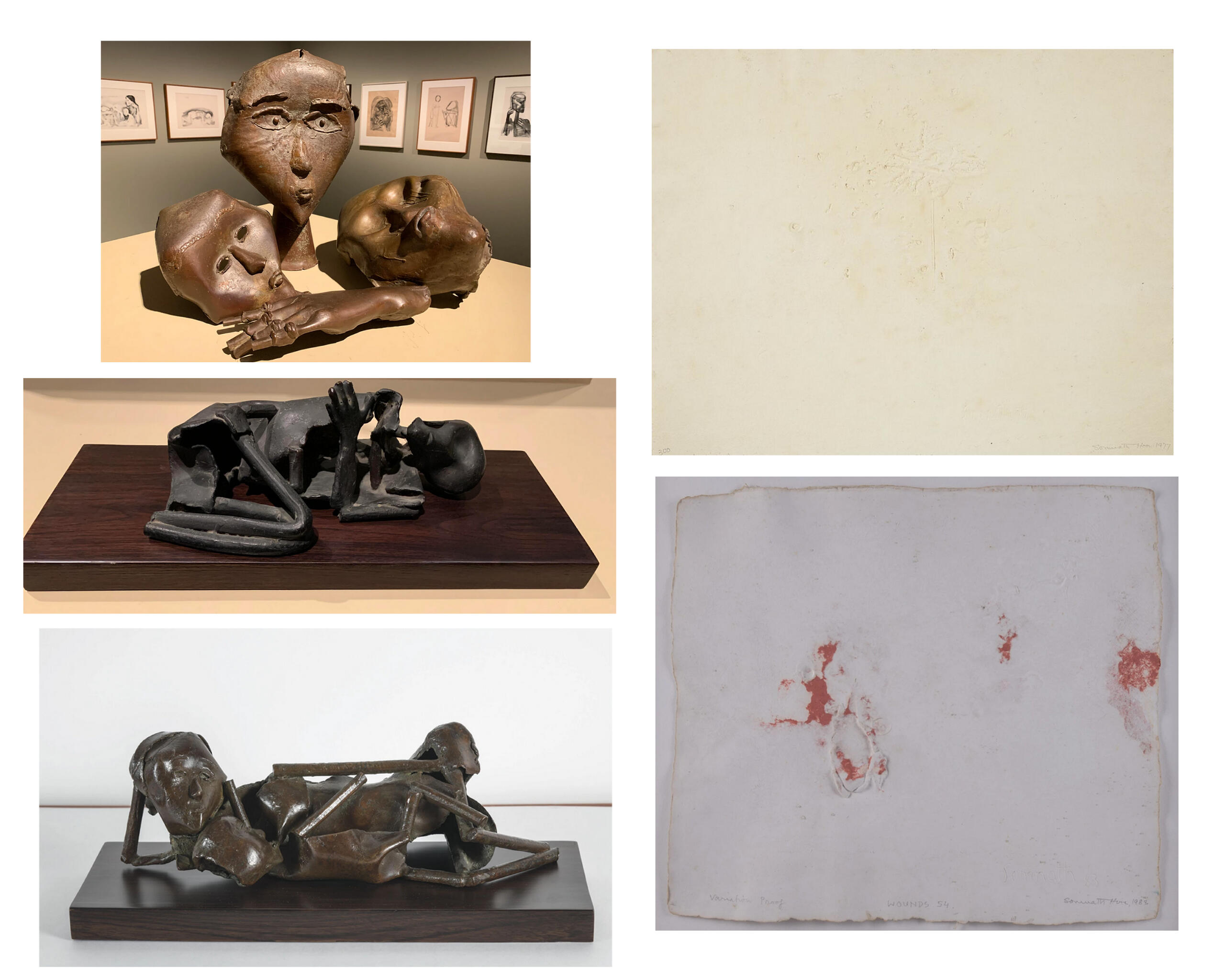 Somnath Hore’s various works. (Courtesy of DAG Modern and Artamour.)Top left: Riots, bronze sculpture